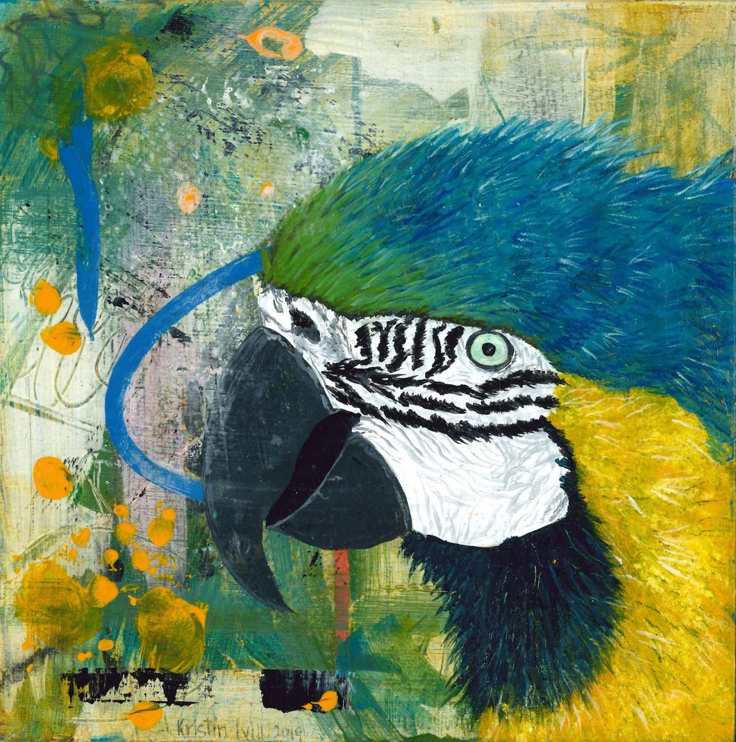 The Blue and Yellow Macaw. Painted from a reference photo I took at Auckland Zoo. These magnificent large South American parrots belong to a large group of neotropical parrots known as Macaws. Painted on Day 17 of Birdtober 2019.