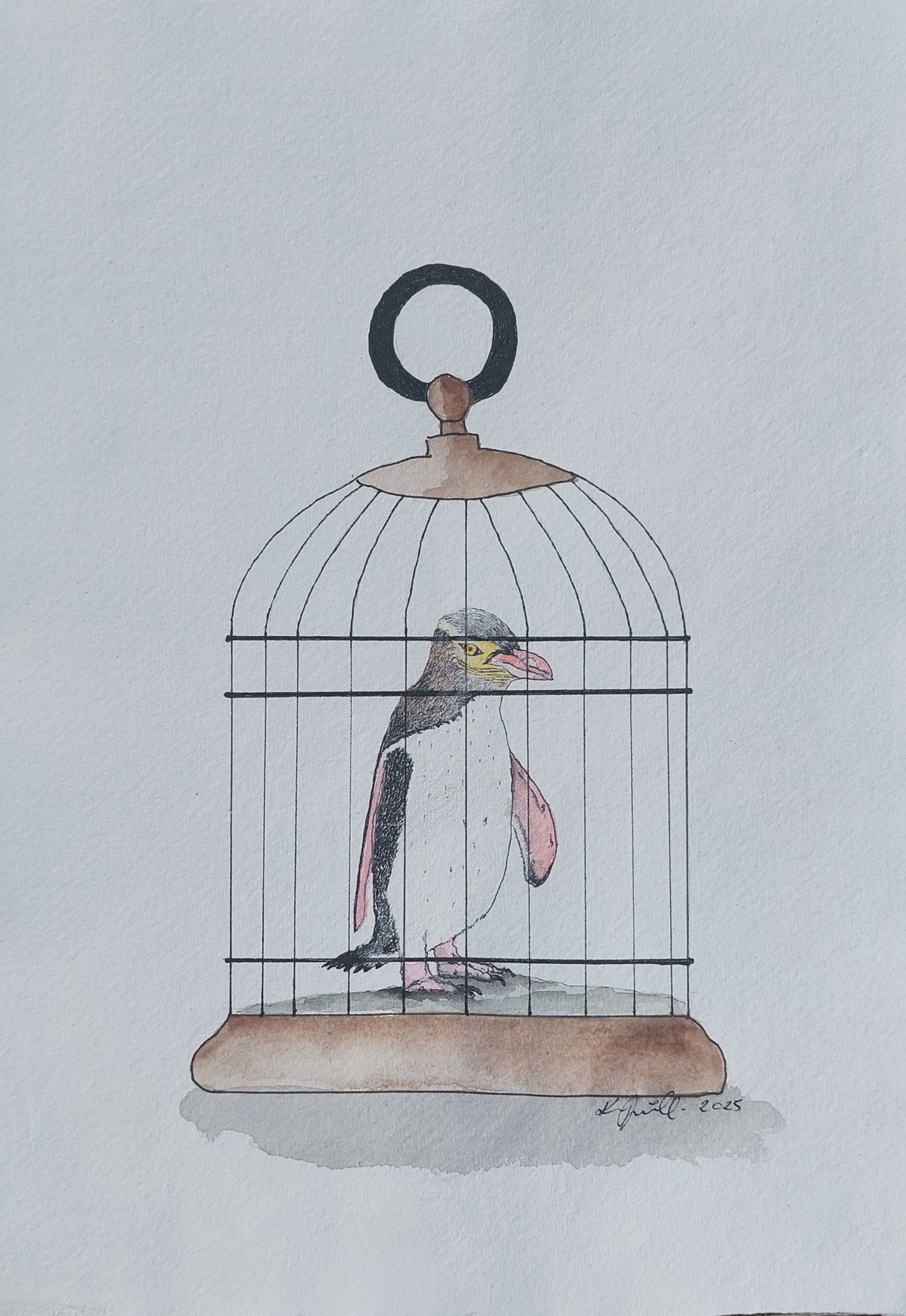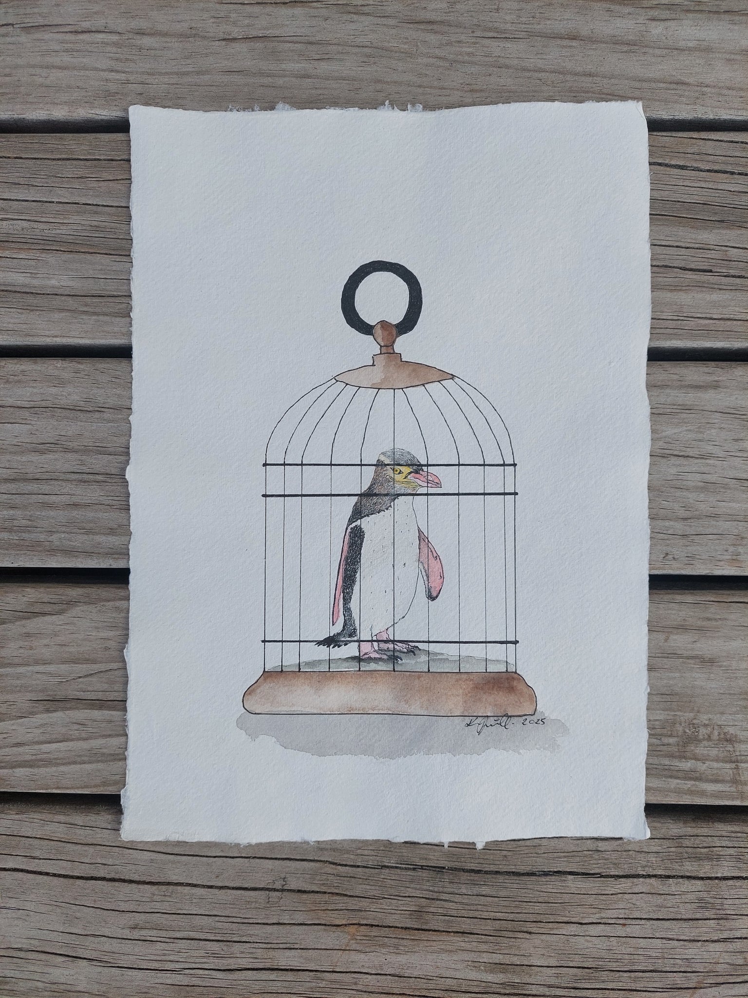 Watercolour and inkpen on A4 150gsm Khadi handmade 100% cotton rag acid-free paper.