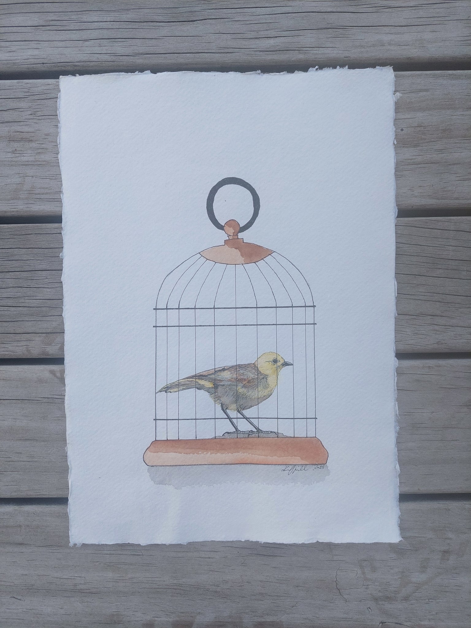 Watercolour and ink pen on A4 150gsm Khadi handmade 100% cotton rag acid-free paper.