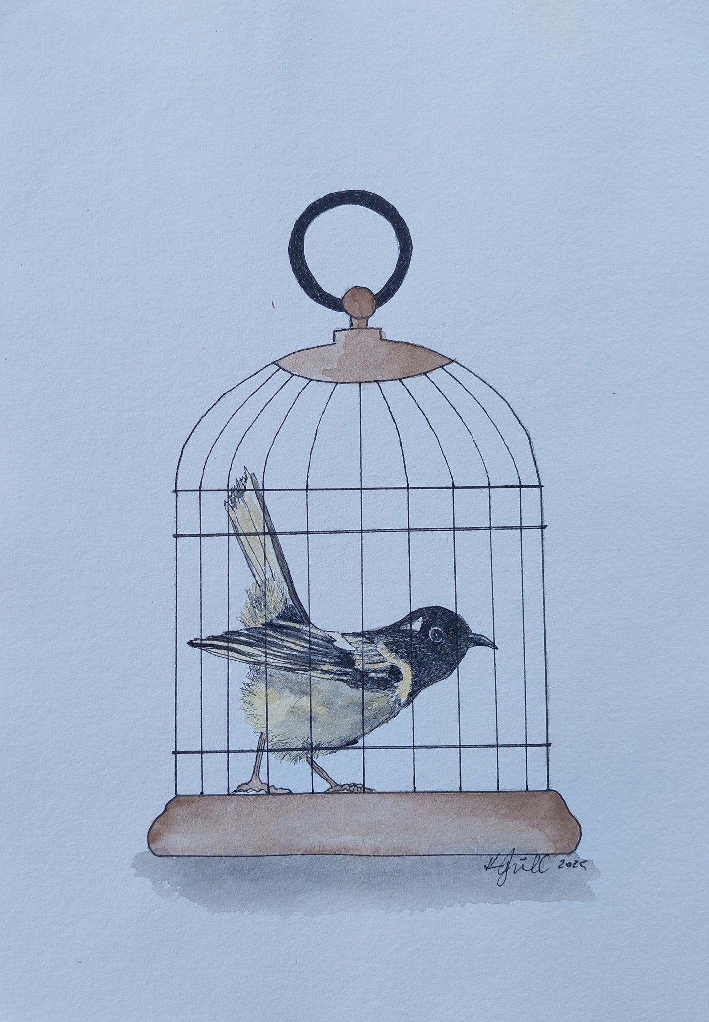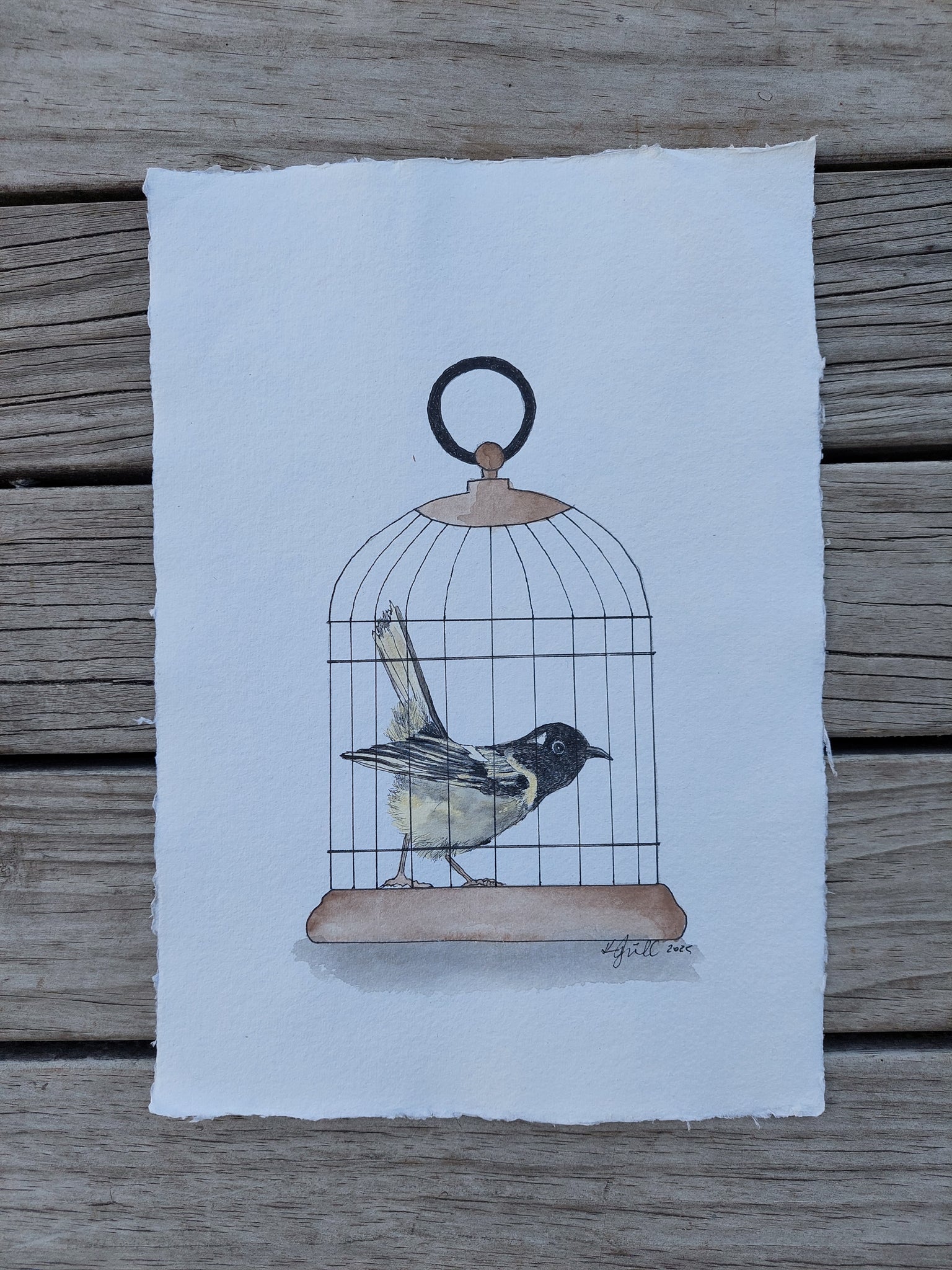 Watercolour and ink pen on A4 150gsm Khadi handmade 100% cotton rag acid-free paper.