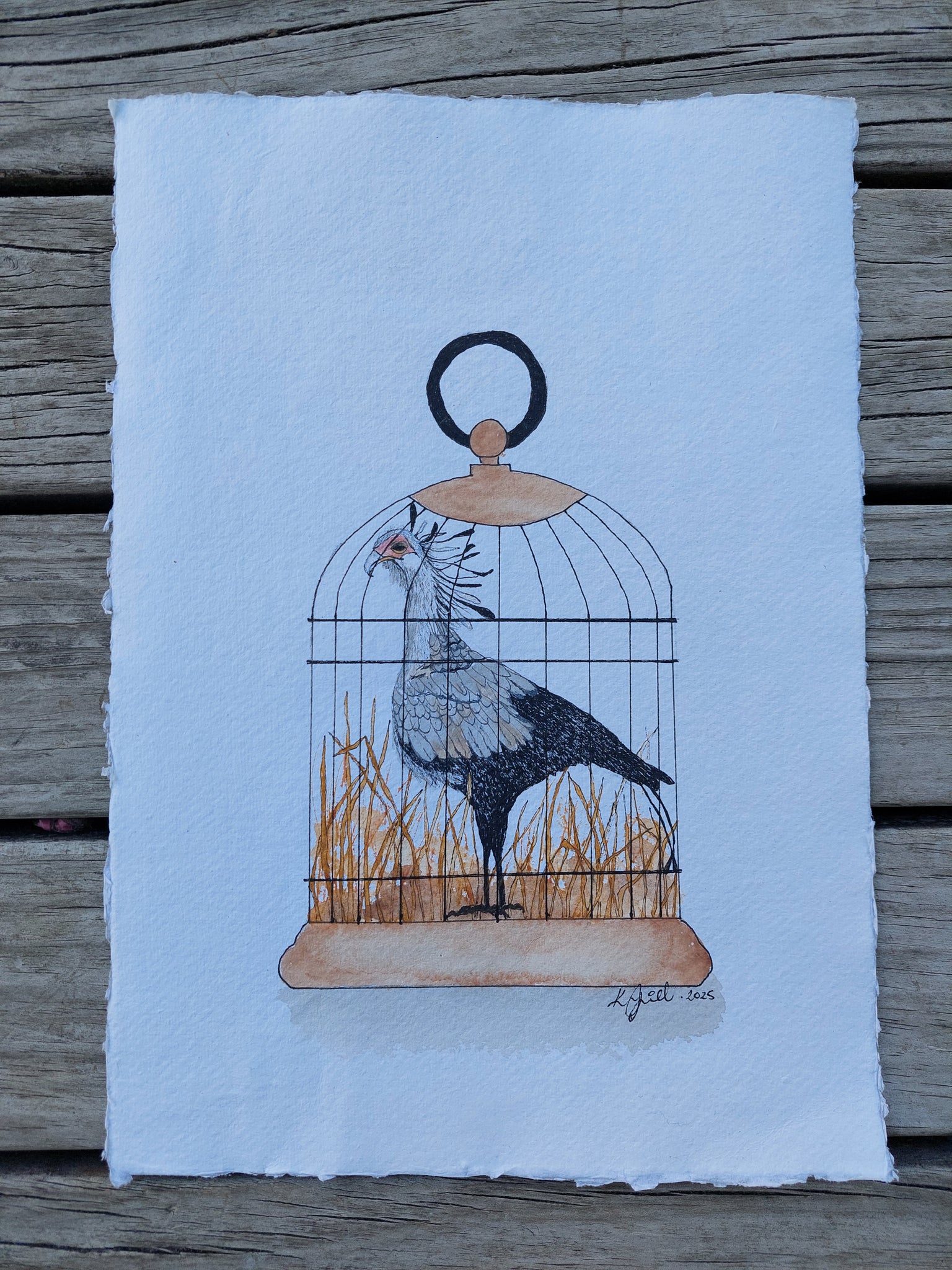 Watercolour and ink pen on A4 150gsm Khadi handmade 100% cotton rag acid-free paper.