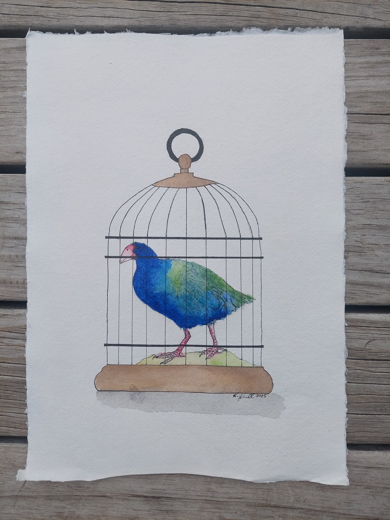 Watercolour and inkpen on A4 150gsm Khadi handmade 100% cotton rag acid-free paper.