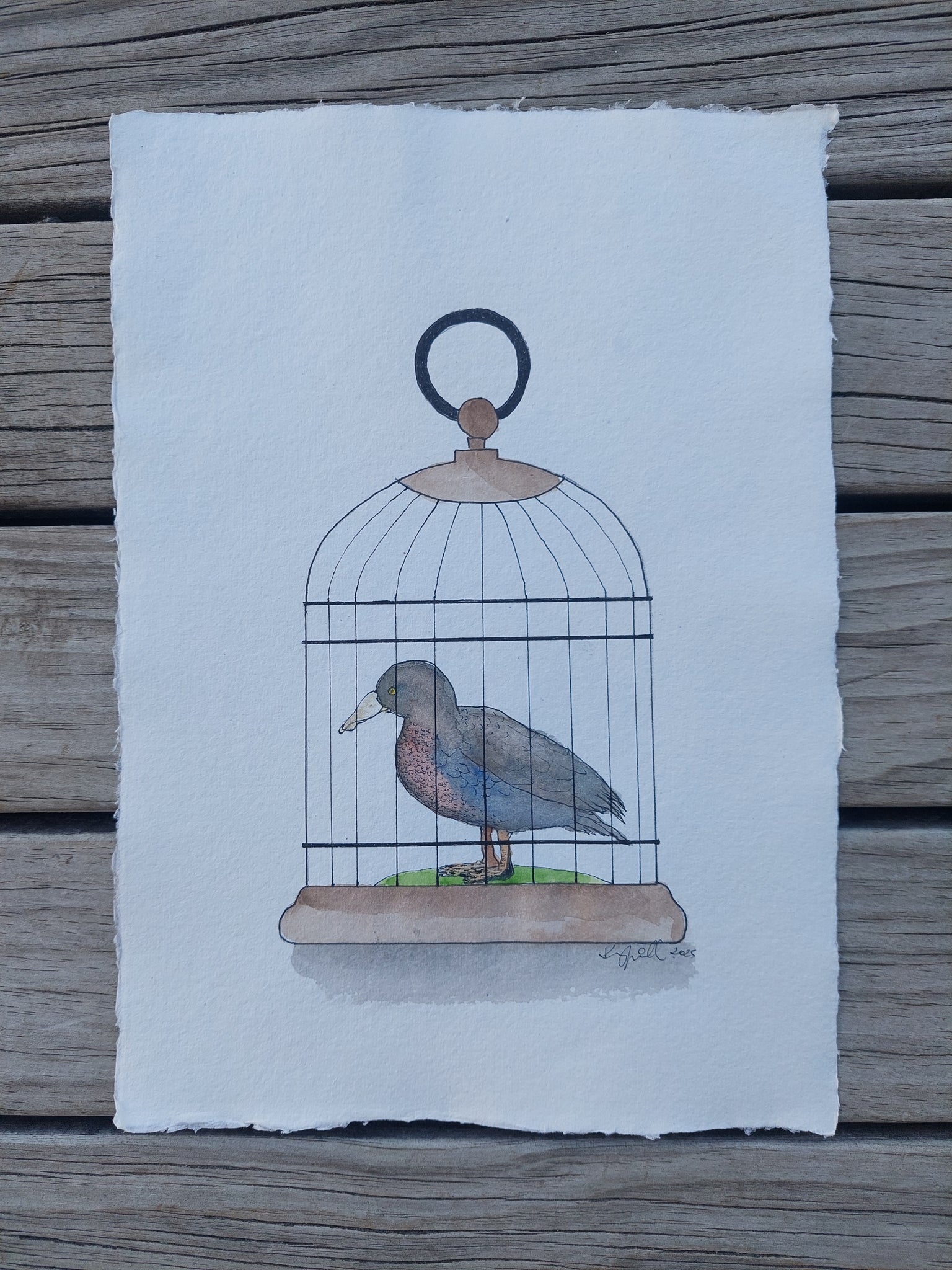 Watercolour and ink pen on A4 150gsm Khadi handmade 100% cotton rag acid-free paper.